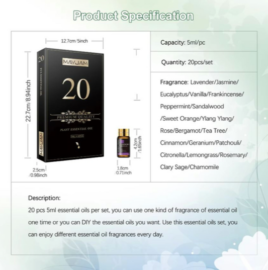 20 Piece Essential Oil Gift Box Natural Plant Extracts for Diffusers and AromatherapyRegular price $97.79 USDRegular priceUnit price / per-
