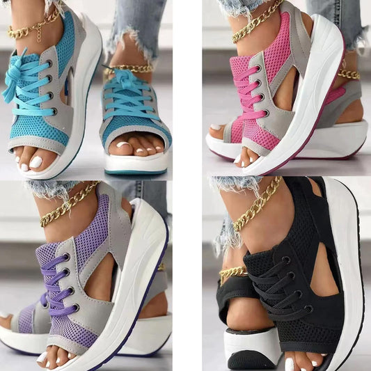Flat Lace-Up Sandals with Paneled Contrast Design