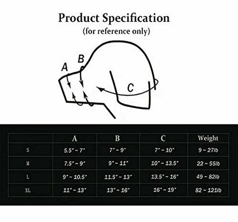 It's simple to choose a pug muzzle. Simply use the accompanying chart to determine your dog's measurements and select the appropriate puppy muzzle. Use our soft muzzle for dogs to enjoy stress-free long walks with your pet!