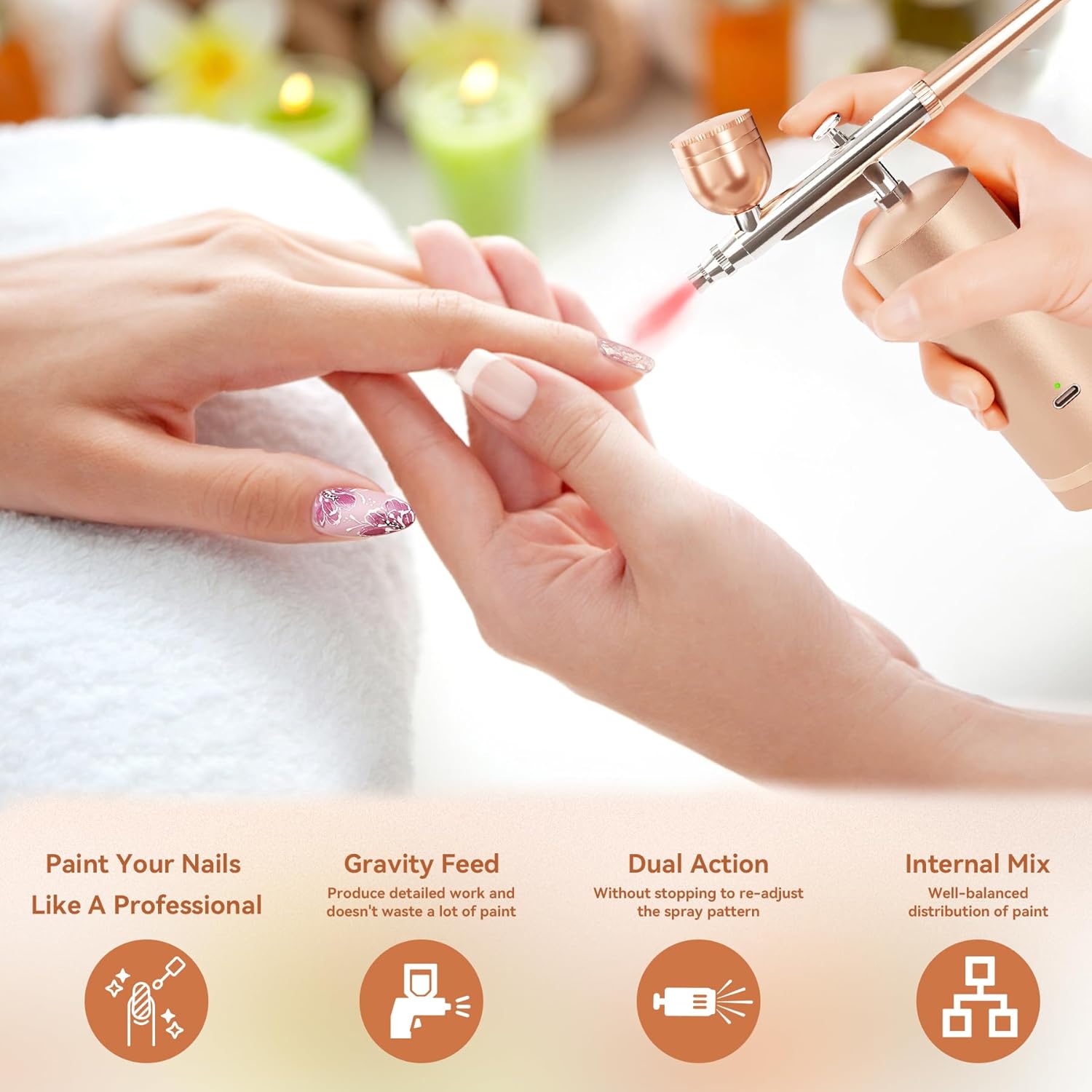 Unleash your creativity anywhere with the Cordless Airbrush Kit! This portable device frees you from cords, giving professional results wherever you are. It makes everything from nail art to model painting easier, offering total freedom to perfect your work.