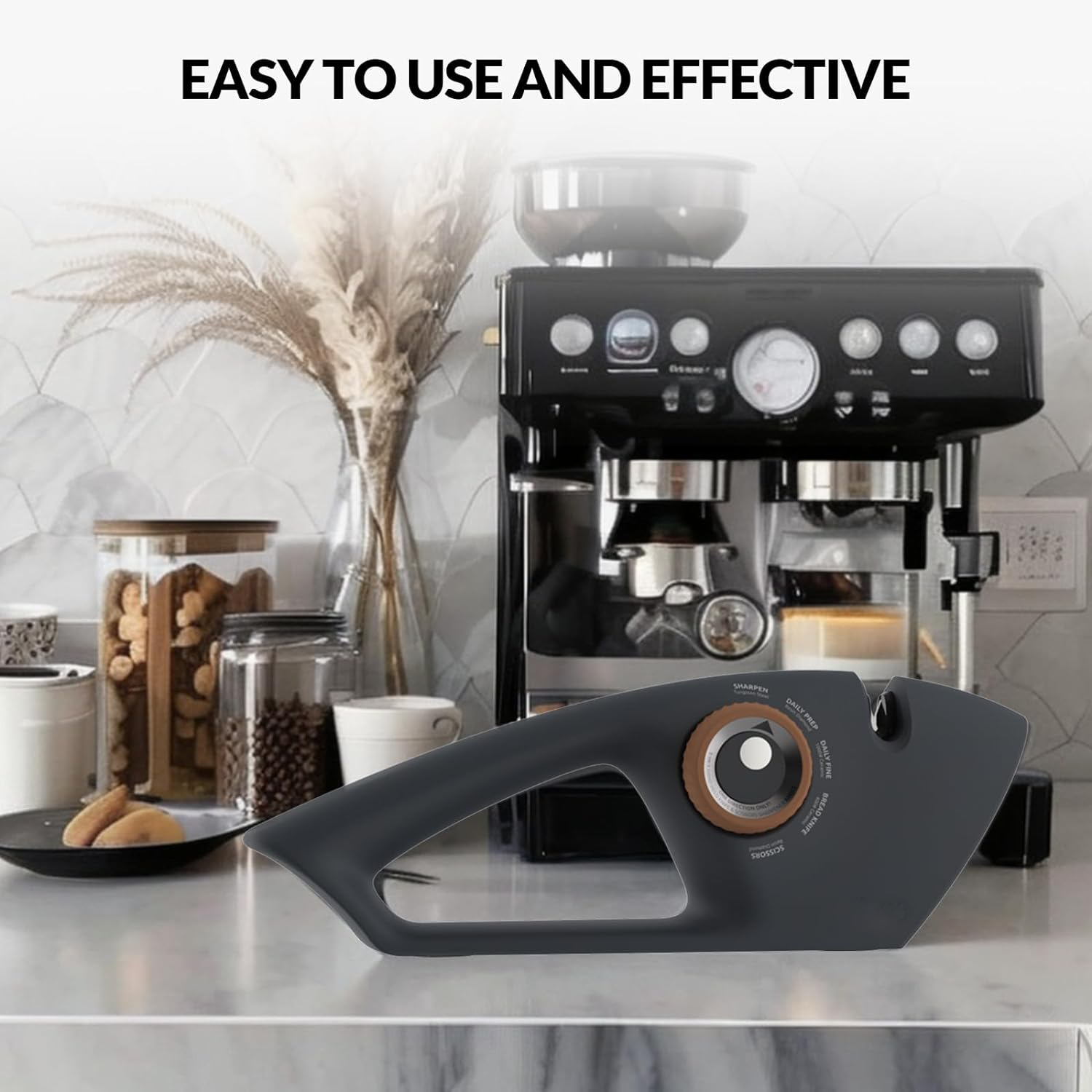 Our premium knife sharpener makes it super easy to keep all your kitchen knives, scissors, and tools sharp. It's quick and efficient, saving you time and effort while making sure your cutting tools always perform at their best.