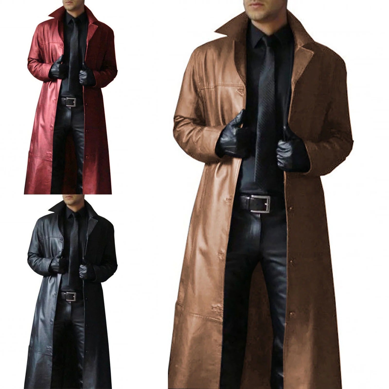 Men’s Leather Coat Classic Long Jacket for All Seasons