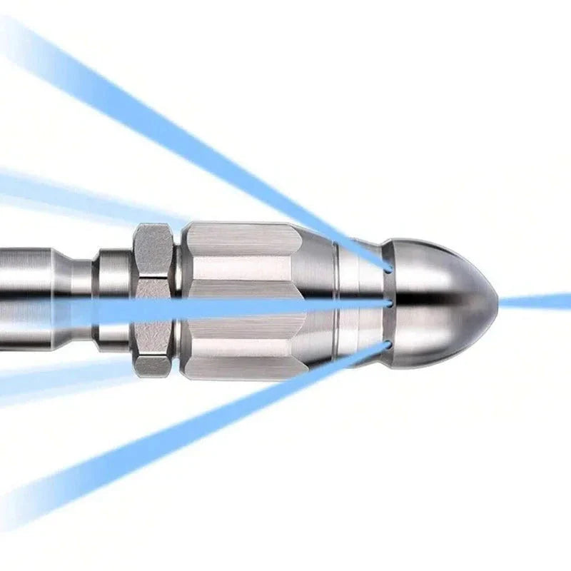 PRECISION DESIGN: This nozzle's pointed tip makes it possible to clean with precision. It can precisely target specific locations and reach deep into pipelines to ensure that every nook and cranny is cleaned to the highest standard. This nozzle is capable of handling mineral deposits, grease accumulation, and tree roots.
