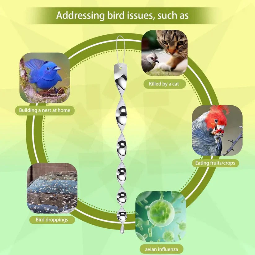Keep your garden, balcony, or rooftop peaceful and bird-free with the Reflective Motion Bird Deterrent Spiral Rod. Designed to spin and reflect sunlight from multiple angles, it safely discourages birds from landing or nesting—no harm, no chemicals, just natural, light-based deterrence