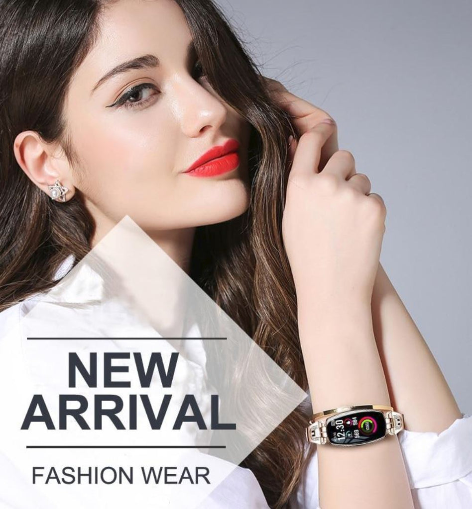 This fitness tracker bracelet combines a modern jewelry-inspired design with essential fitness monitoring features. The color touchscreen and interchangeable bands make it easy to match with your style, while tracking key health metrics throughout the day. The device offers convenience and versatility with an IP67 waterproof rating and compatibility with both Android and iPhone devices.