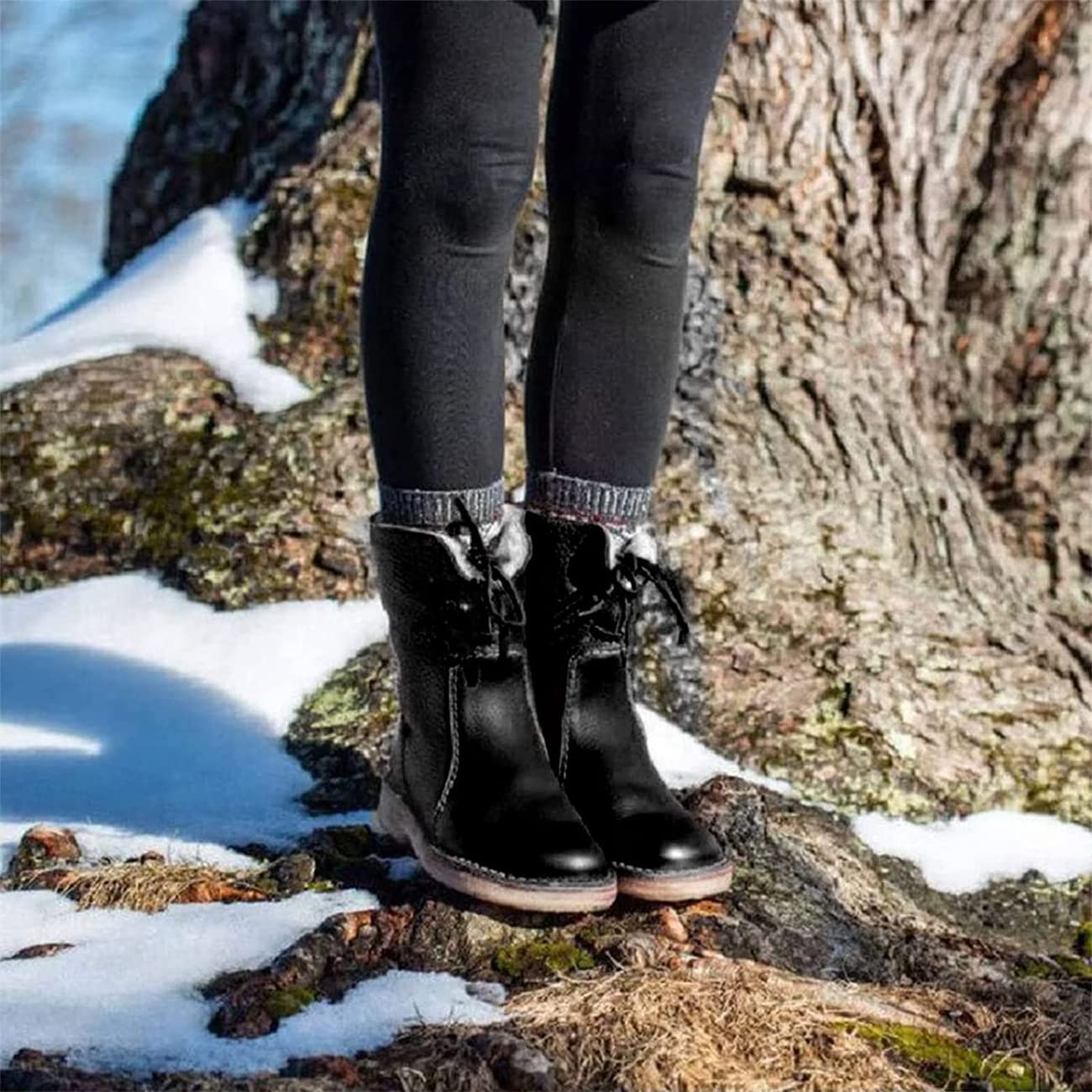 These waterproof boots are designed for comfort, warmth, and long-lasting wear in cold weather. Featuring a wool lining and a durable rubber sole, they provide support and insulation for daily use. The boots include an adjustable collar and double stitching, suitable for both folded-up and folded-over styles.